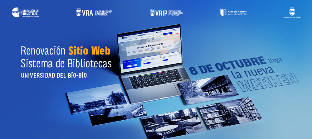 La Vicerrectoría Académica, en conjunto con la Vicerrectoría de Investigación y Postgrado, informa a la comunidad universitaria que desde este 8 de octubre ya se encuentra disponible oficialmente el nuevo sitio web de Bibliotecas de la Universidad del Bío-Bío, alojado en el dominio https://werken.