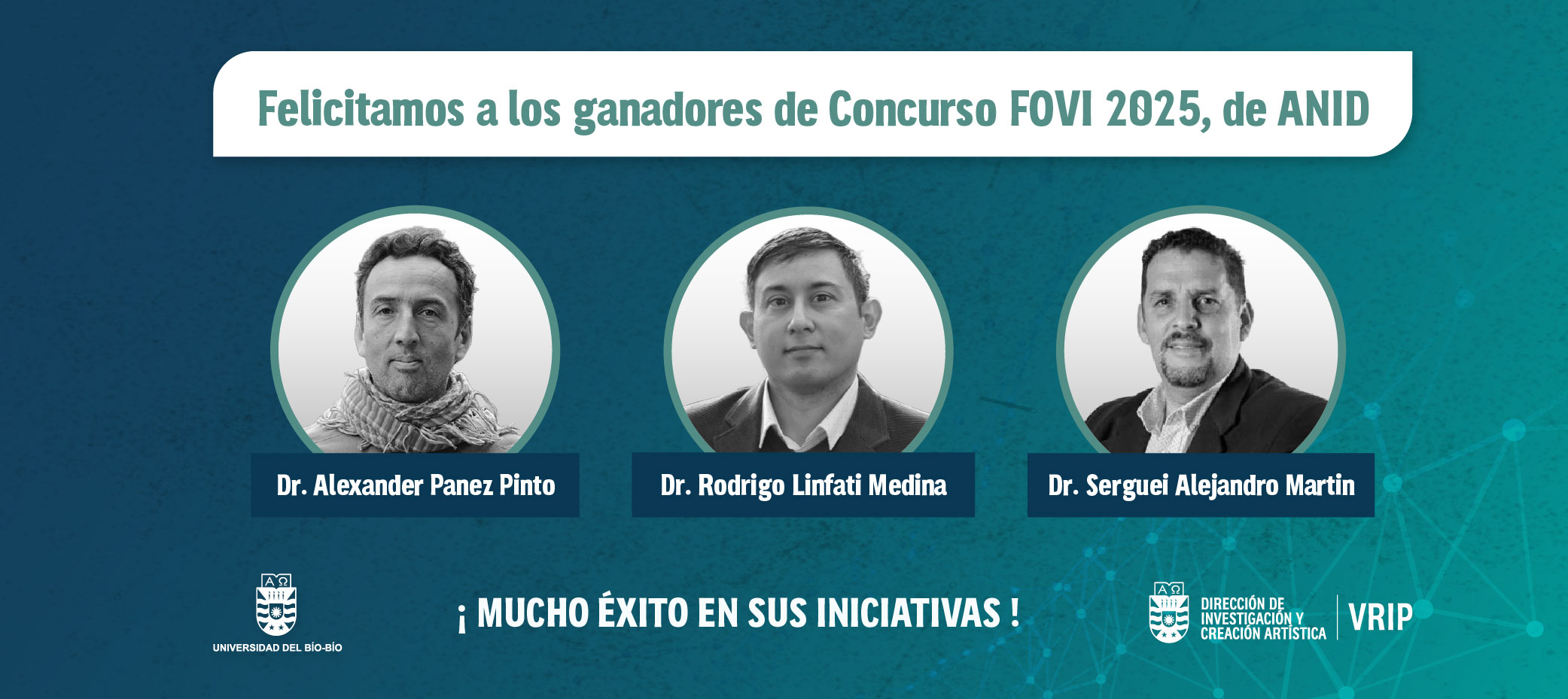 La Dirección de Investigación y Creación Artística de la Vicerrectoría de Investigación y Postgrado de la Universidad del Bío-Bío saluda y felicita a los académicos que resultaron beneficiados en el Concurso de Fomento a la Vinculación Internacional para Instituciones de Investigación (FOVI) 2025, convocado por la Agencia Nacional de Investigación y Desarrollo (ANID).