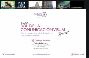 La charla principal estuvo a cargo del ilustrador científico Felipe Serrano González, magíster en Ciencias Biológicas con mención en Biología Celular y Molecular de la Pontificia Universidad Católica de Chile y diplomado en Diseño Editorial de la Universidad de Chile. Serrano, además, es creador de https://illustrascilab.com/, cuenta con una trayectoria que integra ciencia y diseño, lo que le ha permitido trabajar en ilustración científica, infografías, portadas de revistas especializadas y proyectos de divulgación.