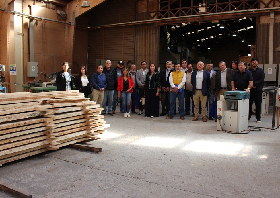 Posteriormente, los participantes recorrieron el Departamento de Ingeniería en Procesos y Bioproductos —ex Ingeniería en Maderas—, donde fueron recibidos por el investigador y director Dr. Mario Ramos, quien señaló que esta repartición académica cuenta con más de 60 años de trayectoria en la formación de profesionales y desarrollo de investigación para la industria forestal. Durante la visita conocieron laboratorios de tecnología de la madera, secado y materiales compuestos, además de proyectos científicos vinculados al aprovechamiento sostenible del recurso forestal.