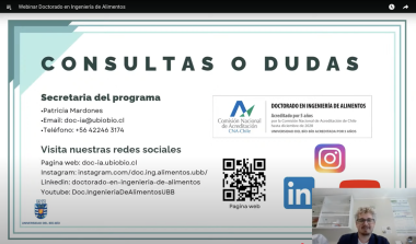 Durante la feria, la Universidad del Bío-Bío presentó su oferta de postgrado compuesta por 10 programas de Doctorado y 21 de Magíster, que abarcan diversas áreas del conocimiento y responden a las necesidades del mundo académico, productivo y social. A través de un formato virtual, los asistentes pudieron conectarse a charlas, conocer el perfil de los programas y resolver dudas directamente con el cuerpo académico.